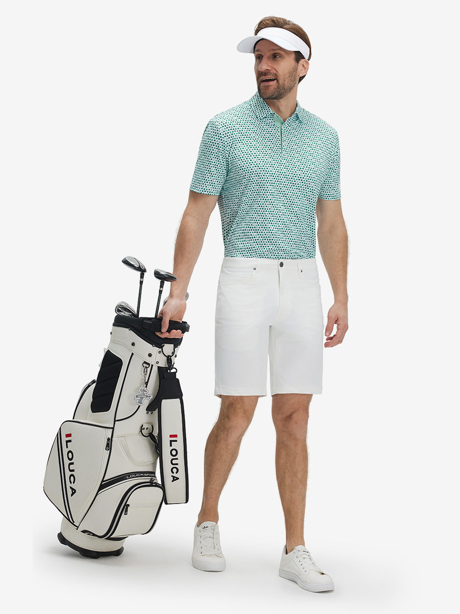 Step up your game in 4 Way Stretch Print Collared Polo Shirts! Designed with breathable, moisture-wicking, quick-dry fabric and a smooth, skin-friendly feel, they keep you cool and comfortable all day. The 4-way stretch ensures total freedom of movement, while UPF 50+ shields you from the sun—perfect for golf or everyday wear. Bold print designs add standout style, so you look sharp whether you're on the course or out and about!