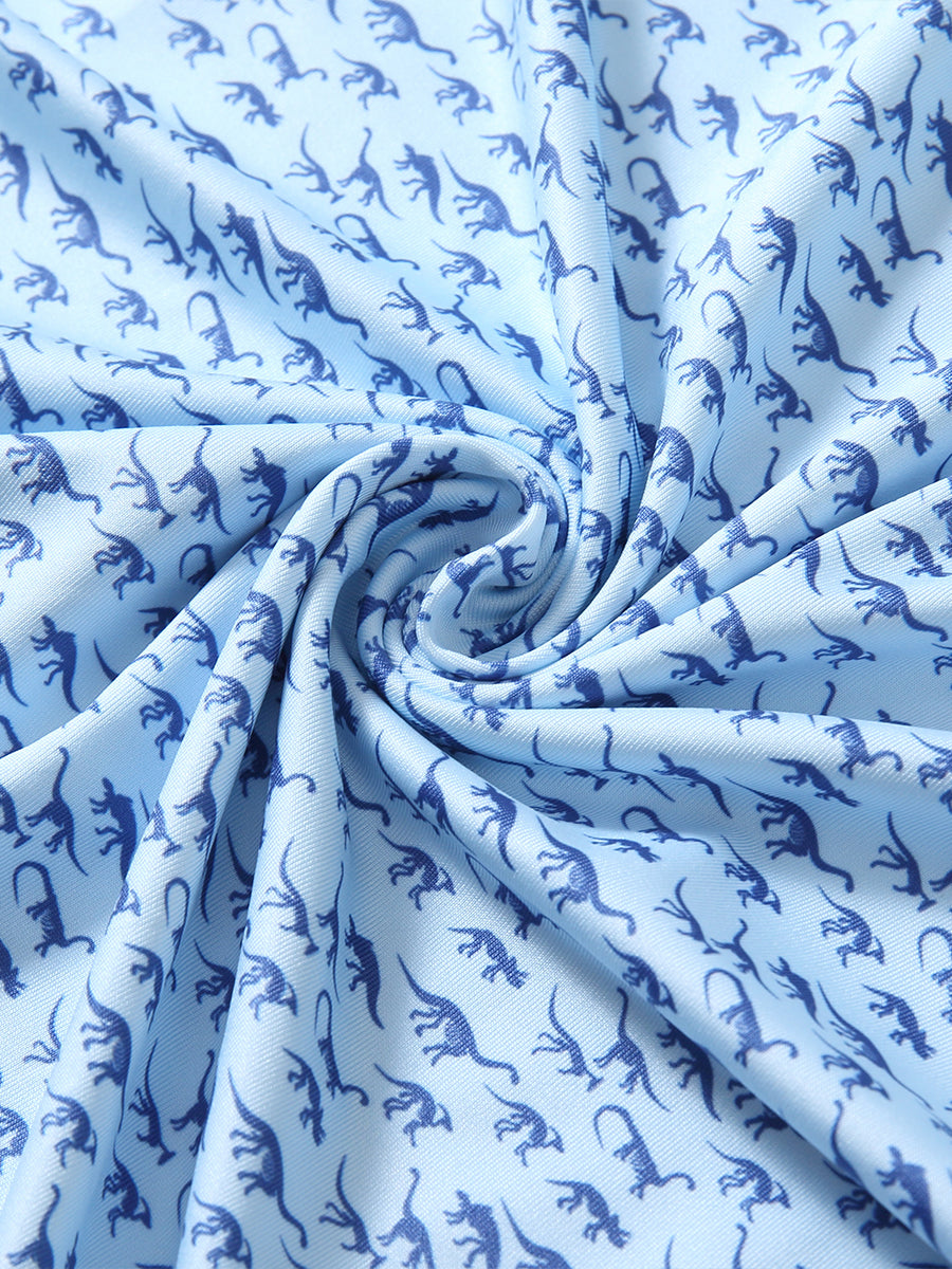 Get your little golfer ready for adventures with our 'Performance Print Boys Golf Polo.' Crafted from top-notch fabric that wicks moisture, stays light, and shields with UPF 50+. Let him swing freely with the split hem and stretchy fabric. Watch him rock the course in fun animal and plant prints that never fade, making him the cutest golfer around!